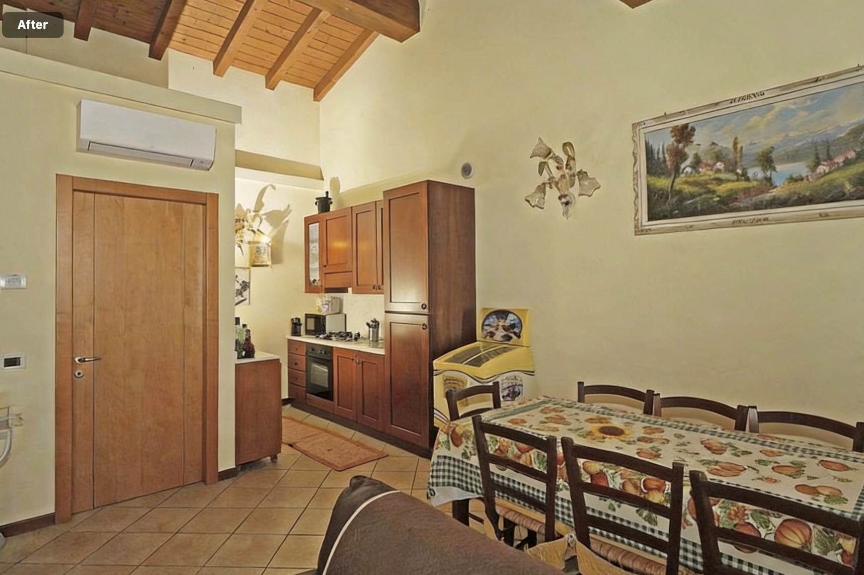 All’ingresso troviamo una spaziosa zona giorno con cucina a vista e accesso diretto alla grande terrazza vivibile, ideale per pranzi all’aperto e momenti di relax con una vista panoramica mozzafiato sul lago.
