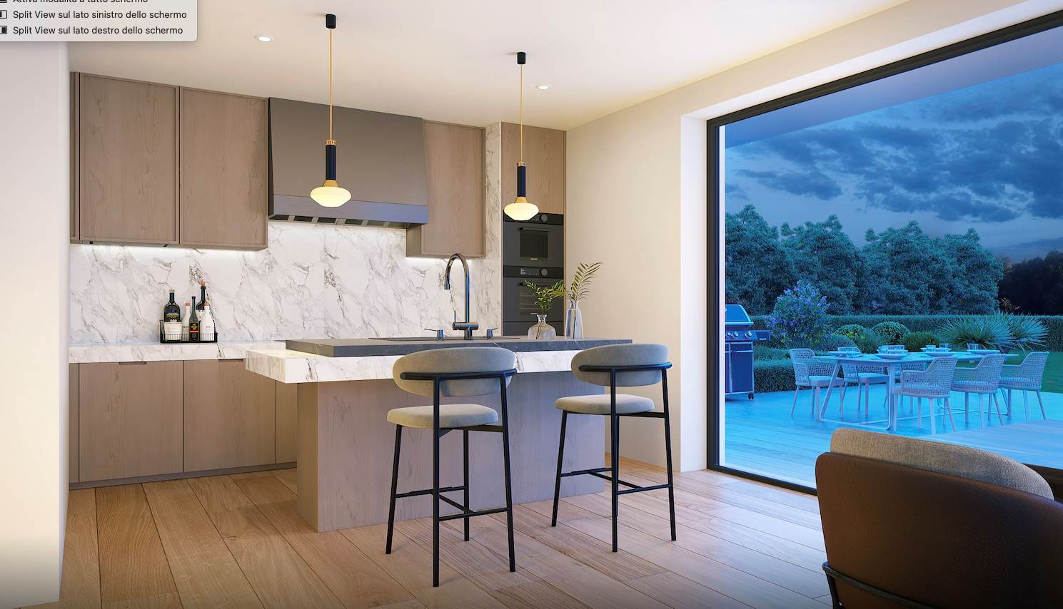 Le ampie superfici vetrate creano una suggestiva sensazione “infinity”, fondendo gli spazi interni con l’esterno e valorizzando ogni scorcio panoramico.