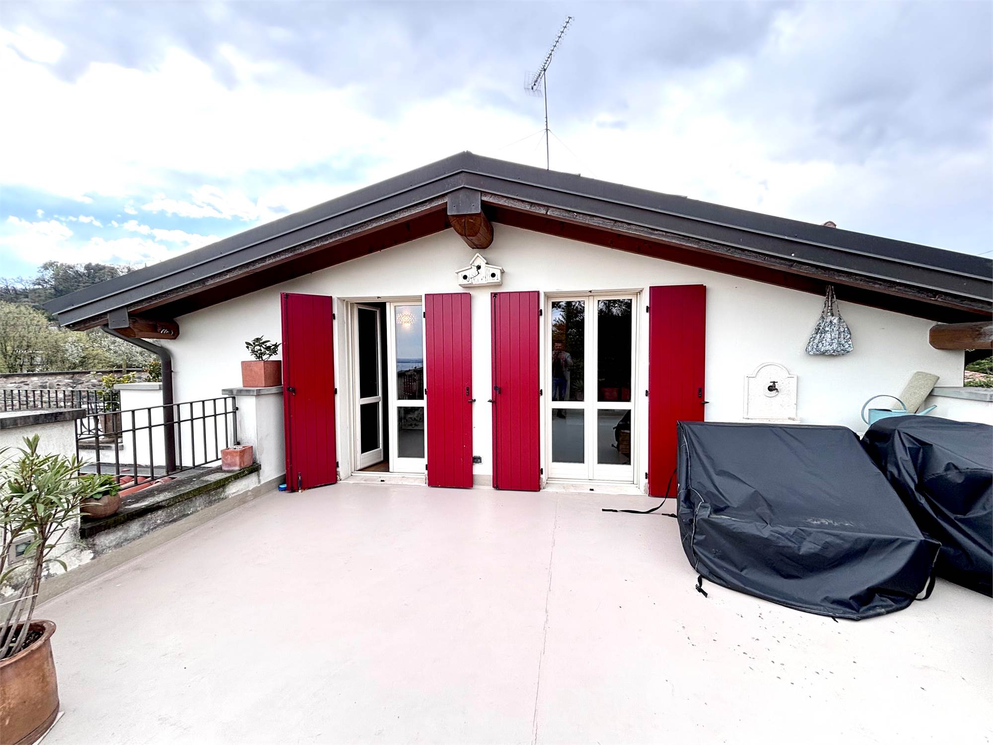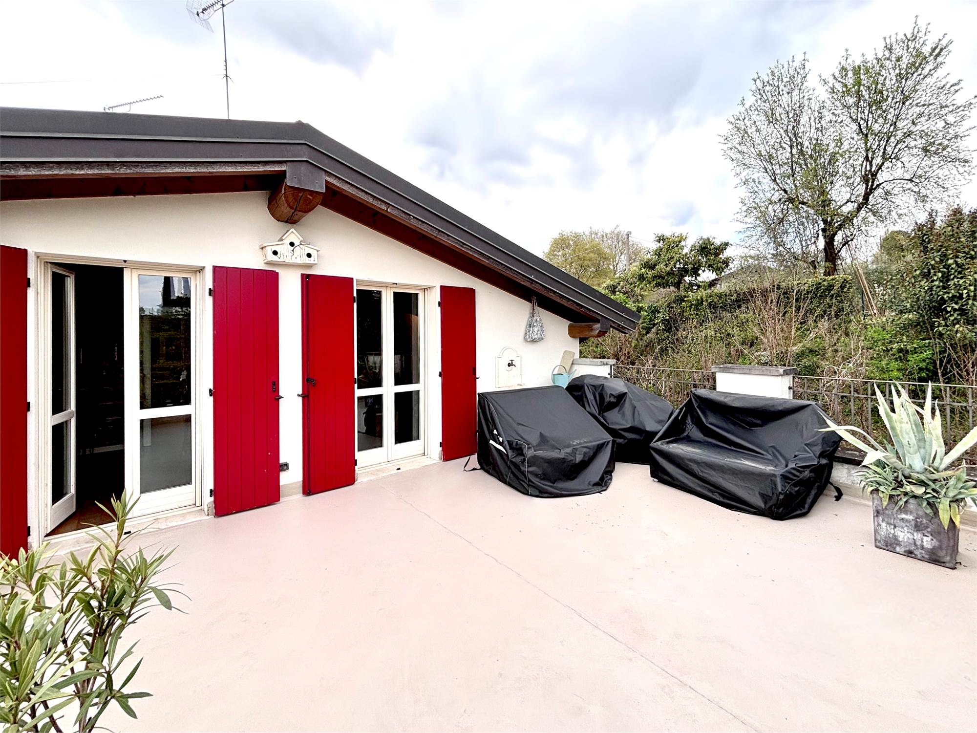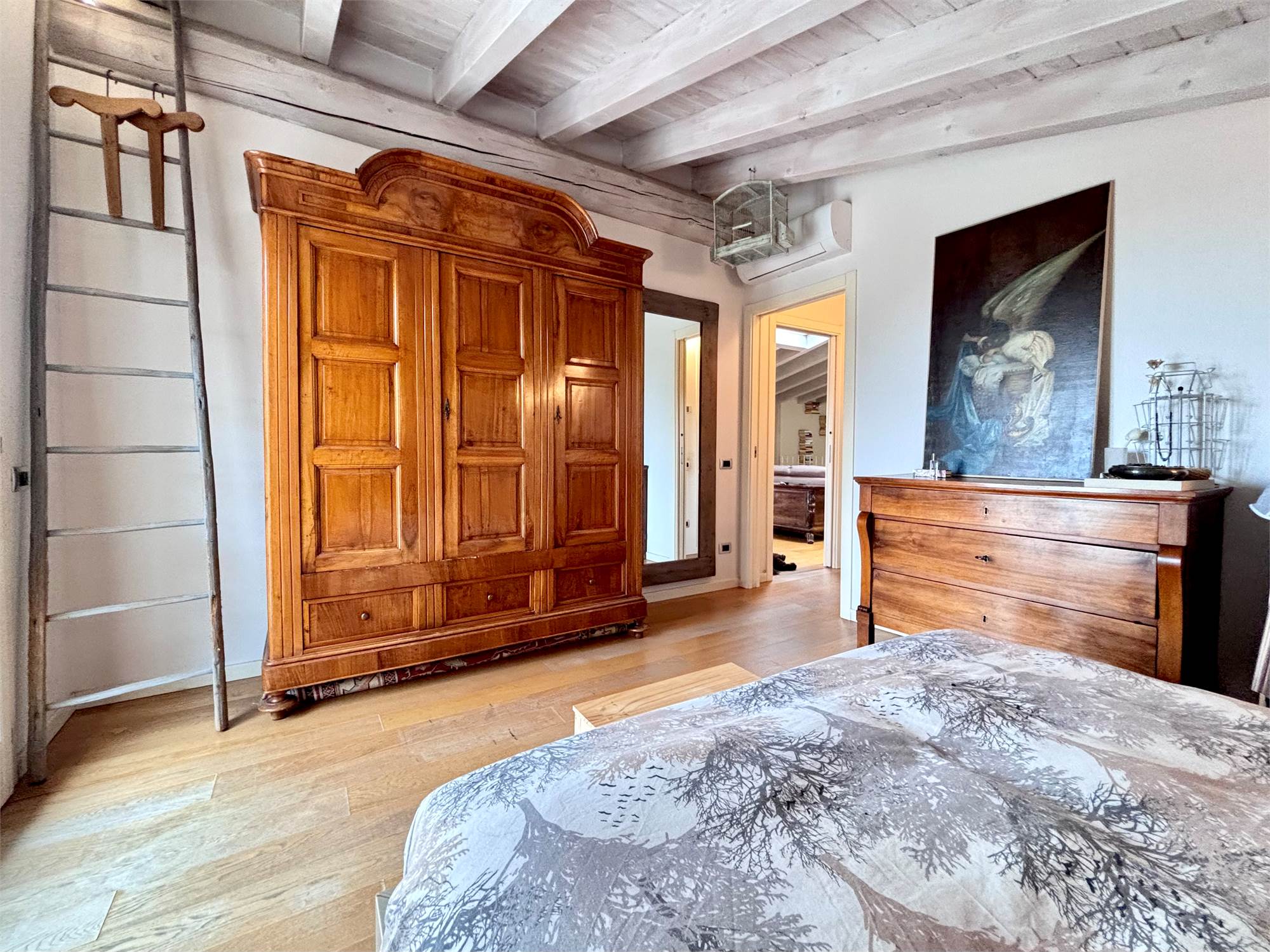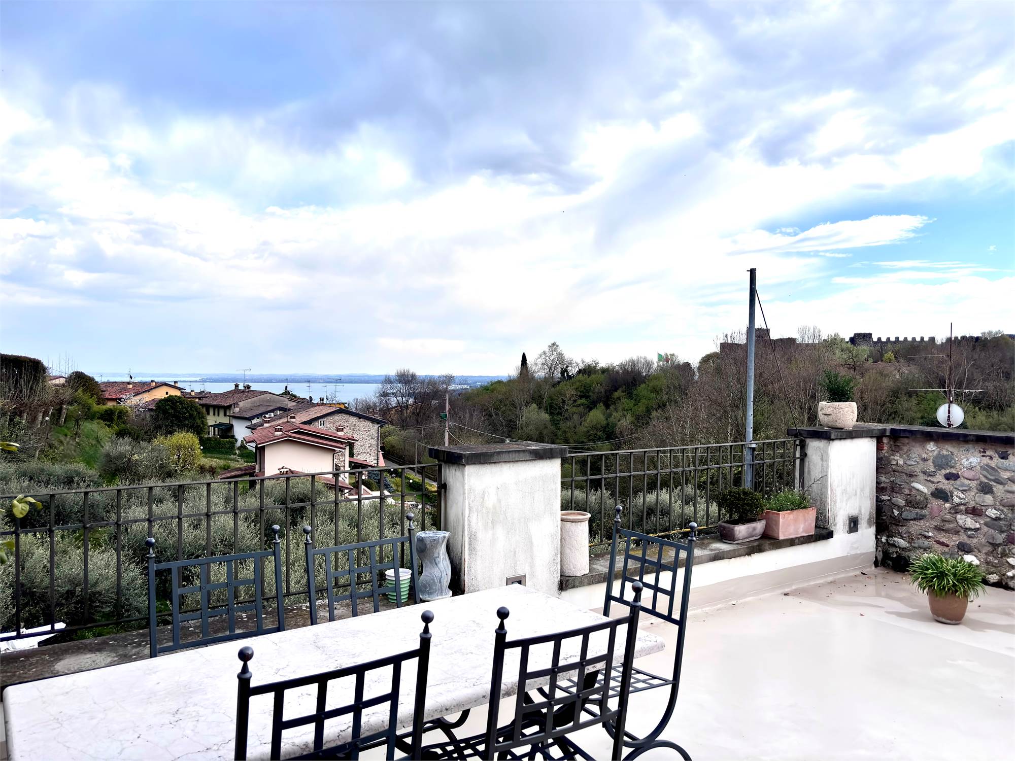Attico raffinato , terrazze panoramiche con vista sul lago e castello, piscina, cantina, autorimessa e posto auto privato.
