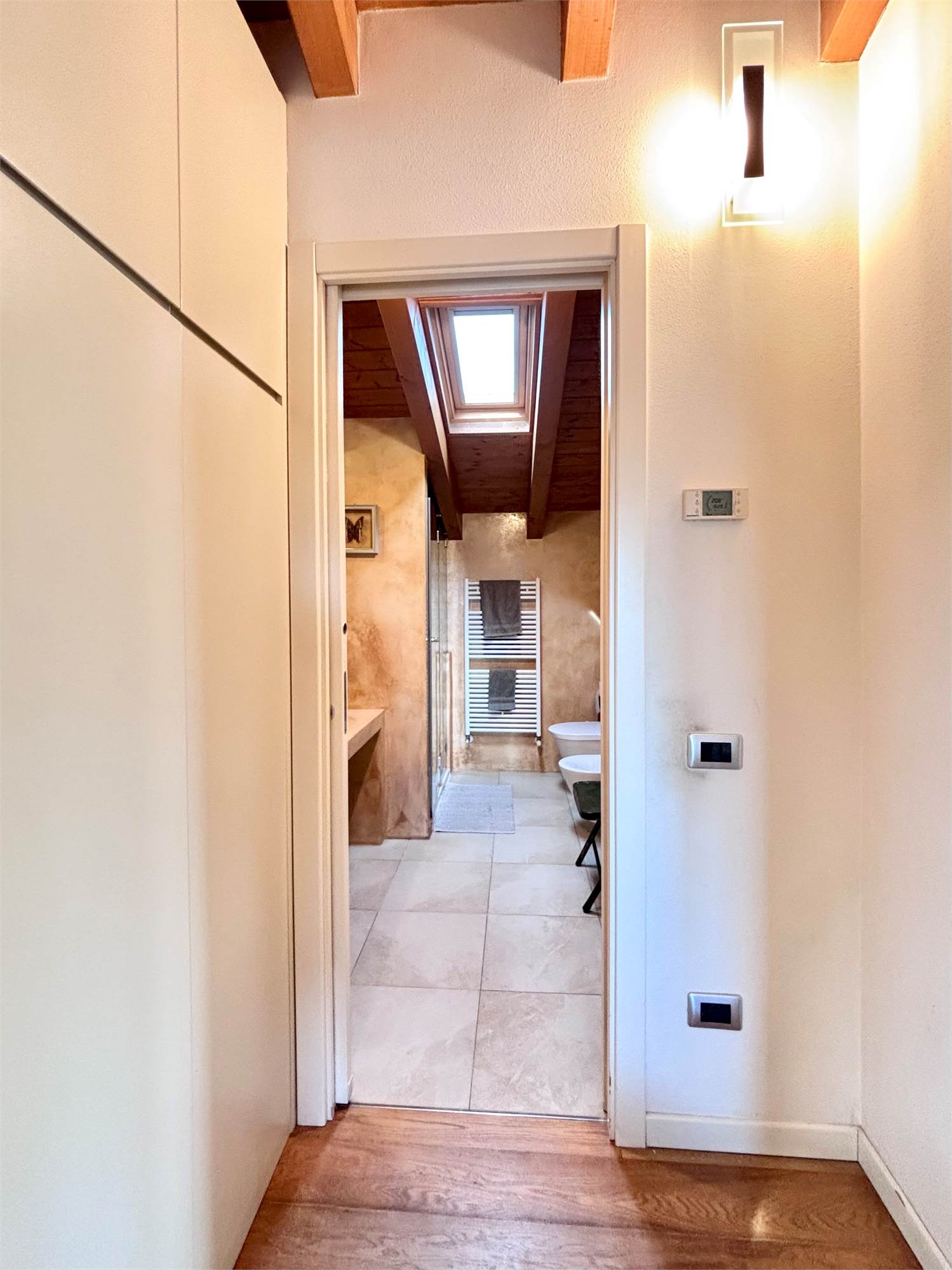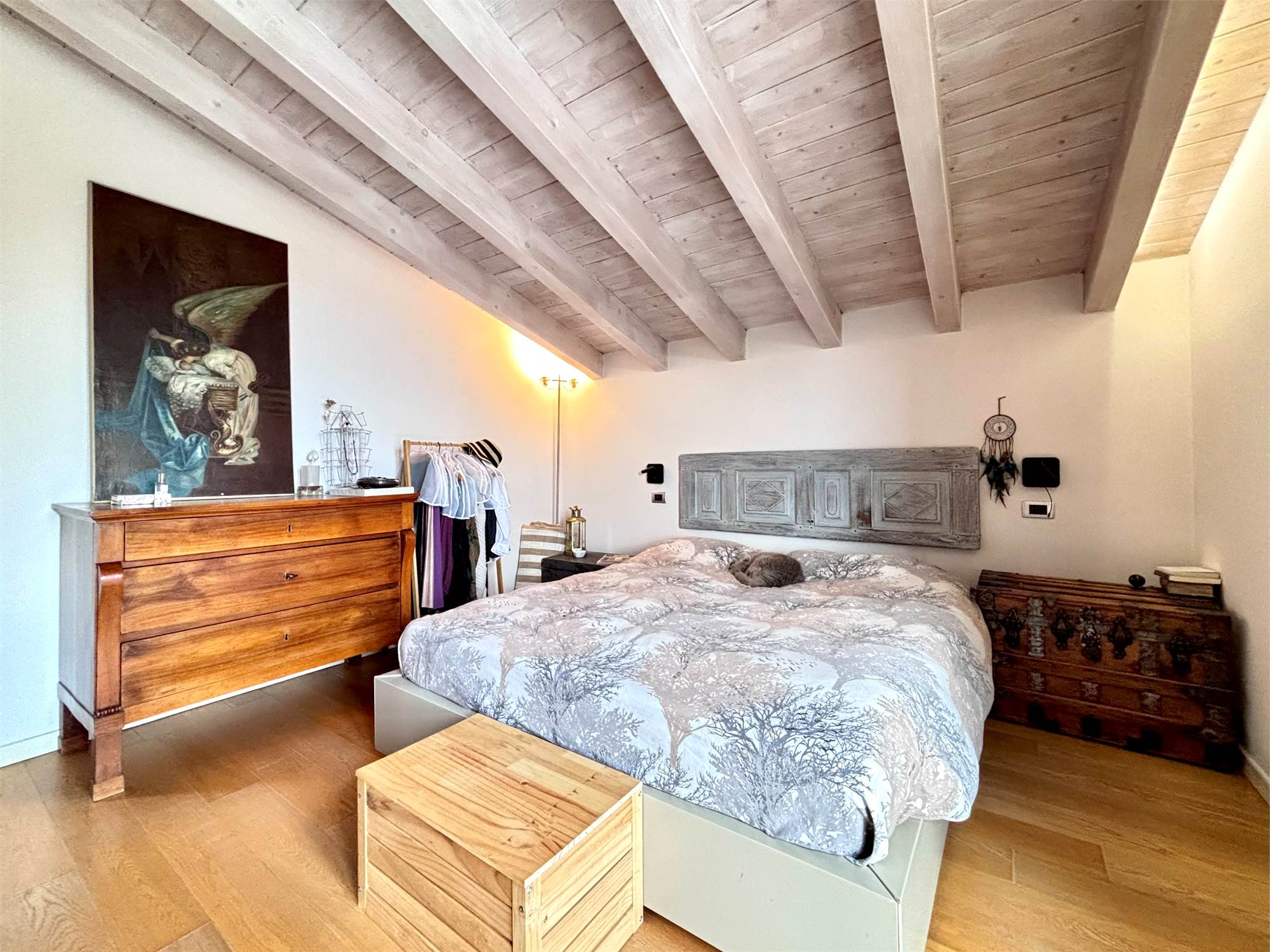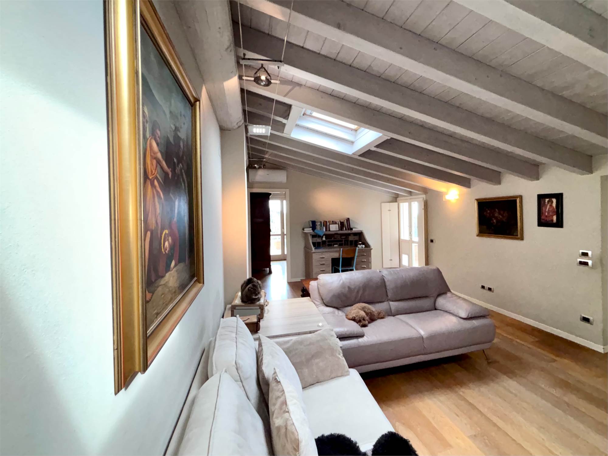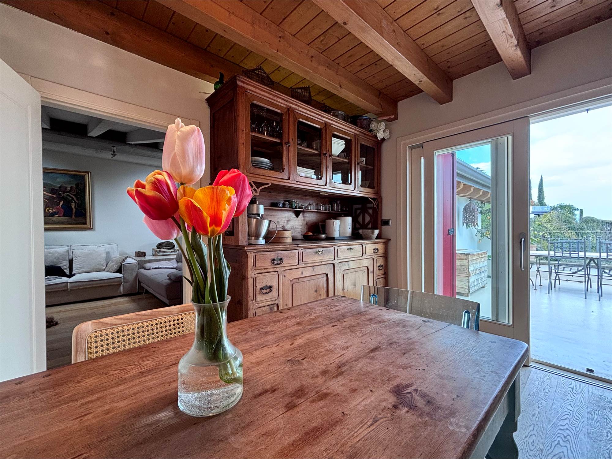 Attico raffinato , terrazze panoramiche con vista sul lago e castello, piscina, cantina, autorimessa e posto auto privato.