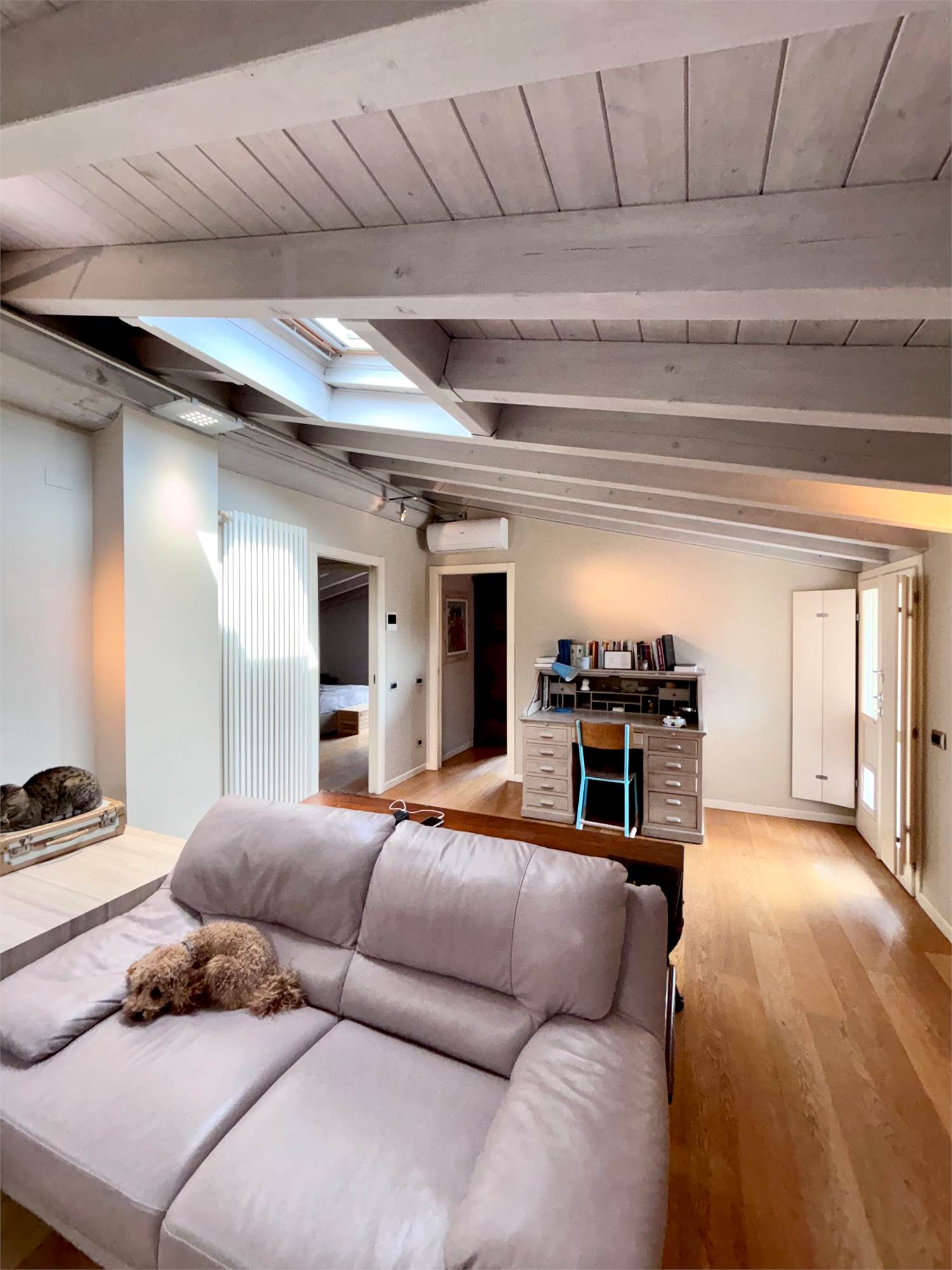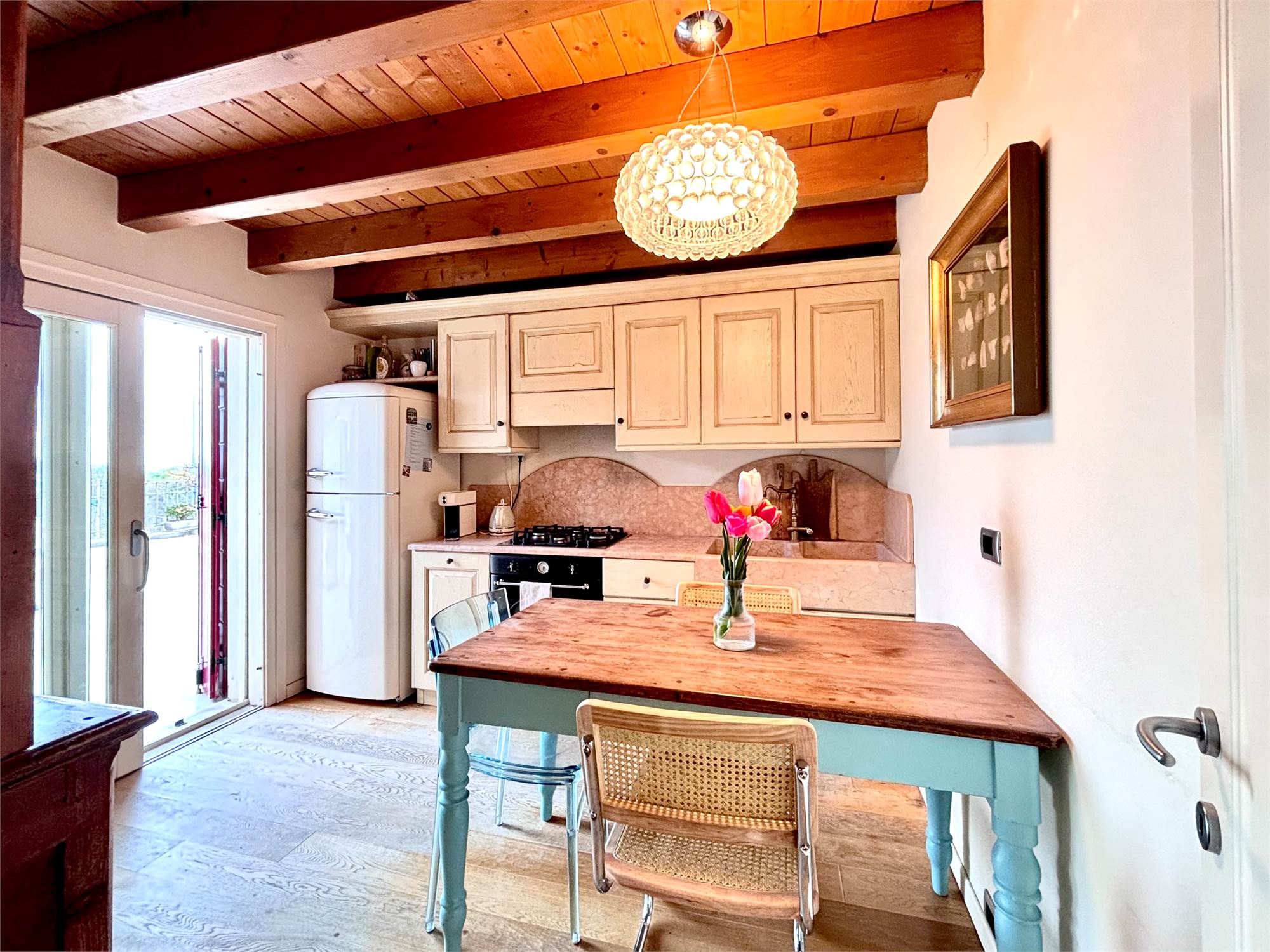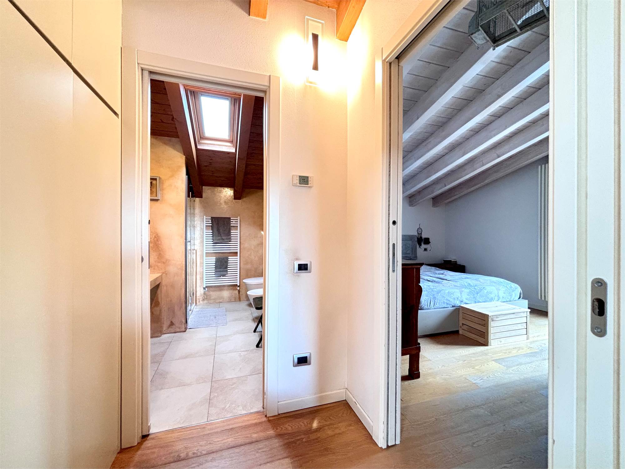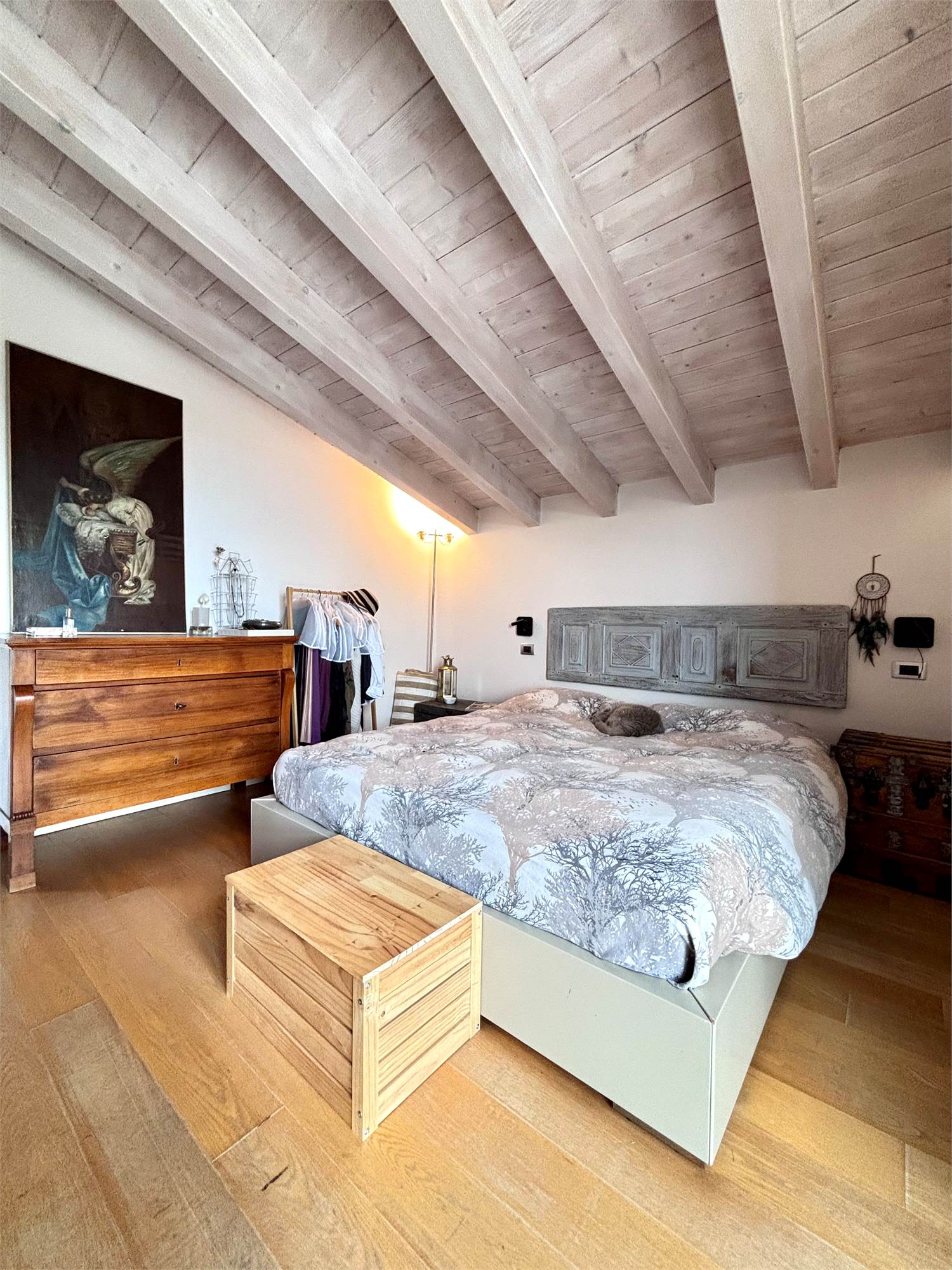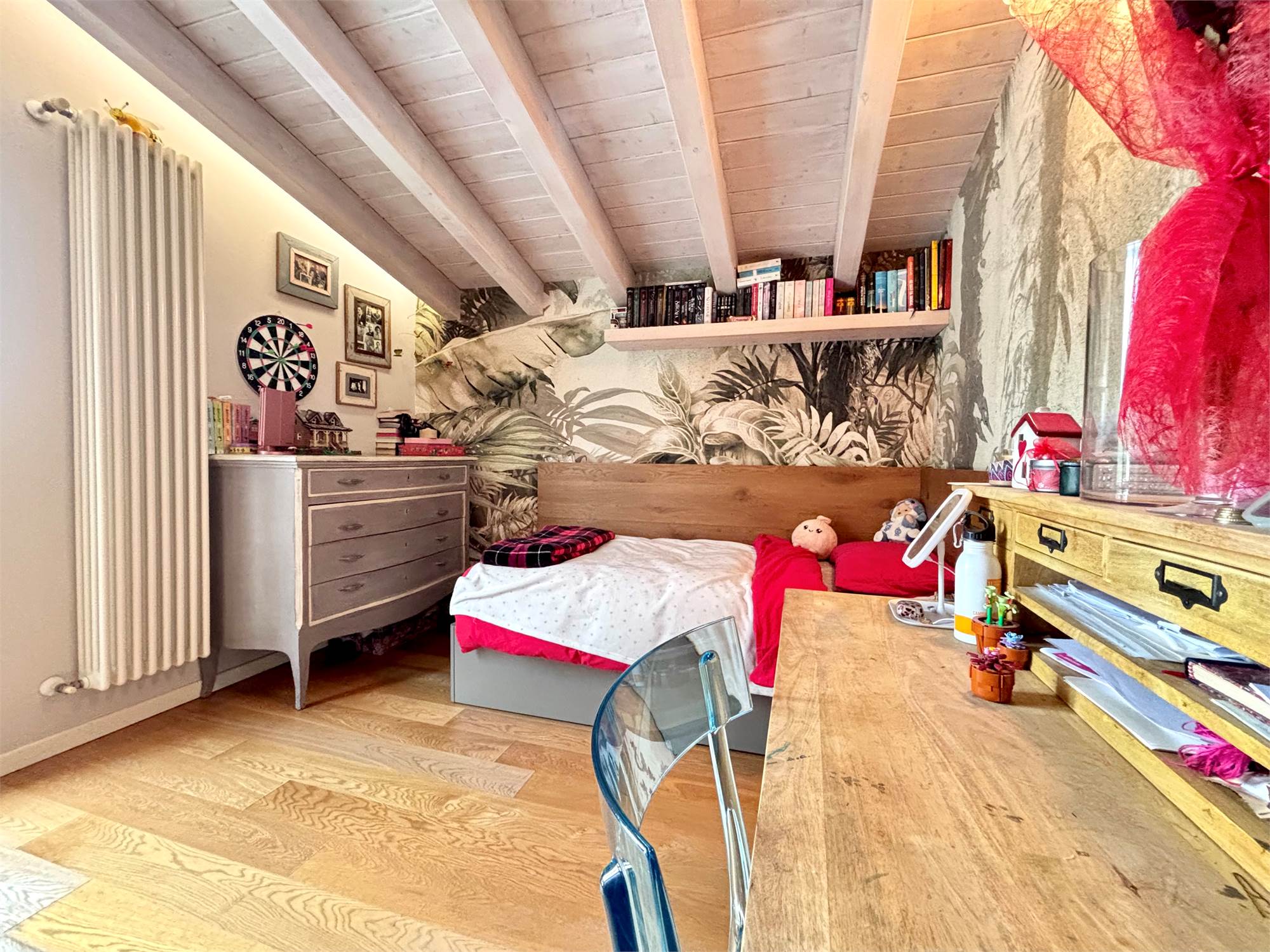 Attico raffinato , terrazze panoramiche con vista sul lago e castello, piscina, cantina, autorimessa e posto auto privato.