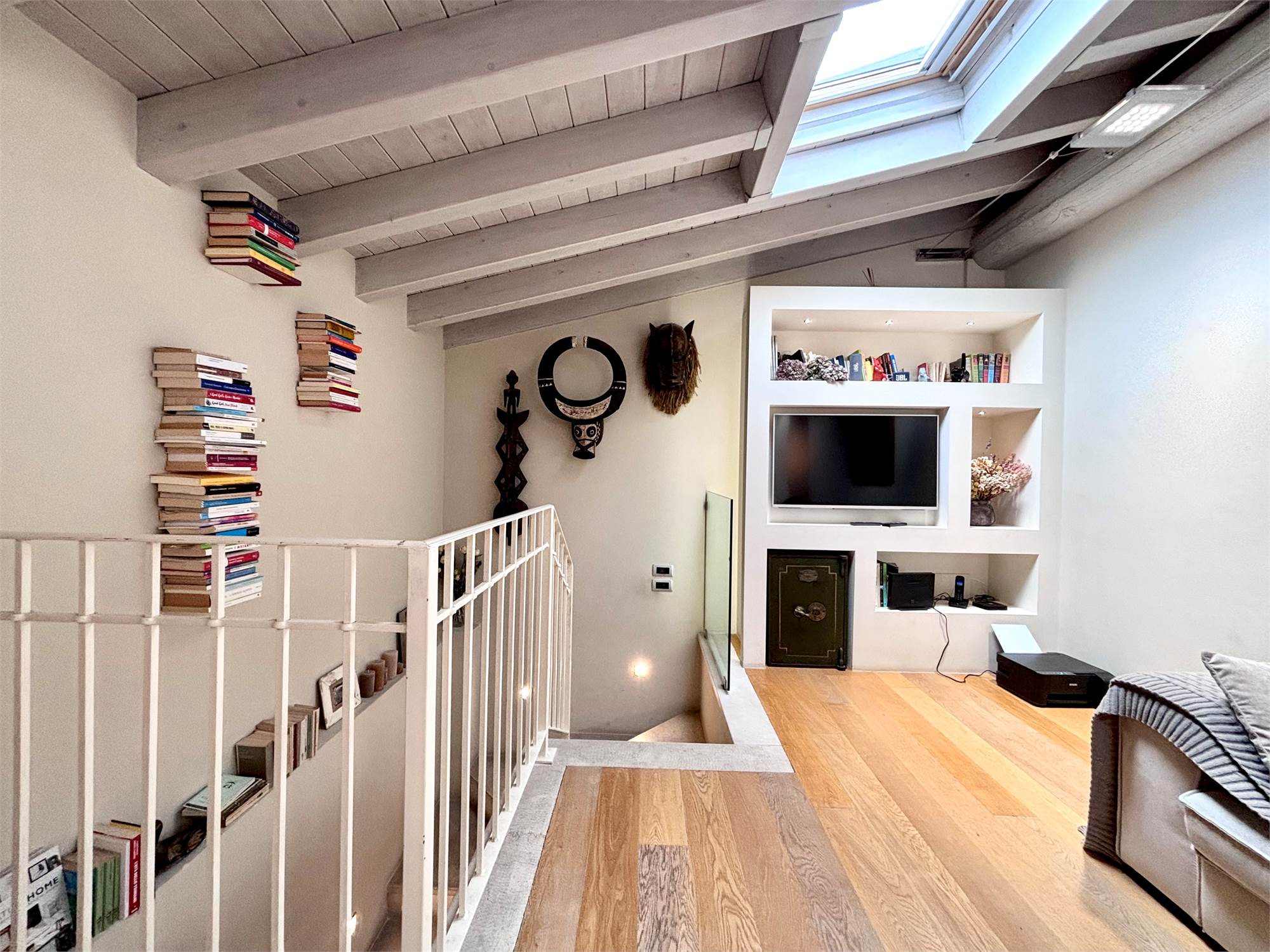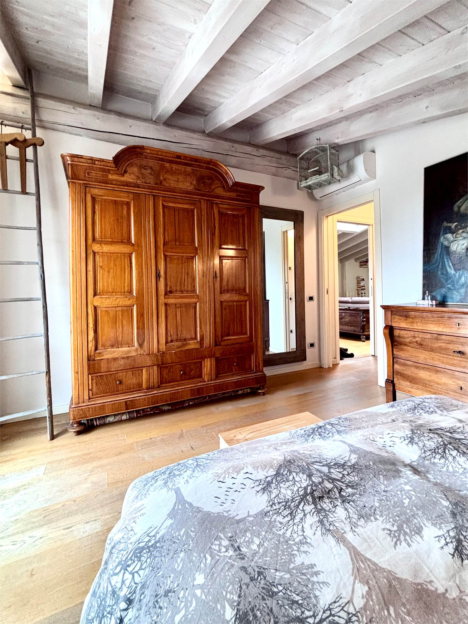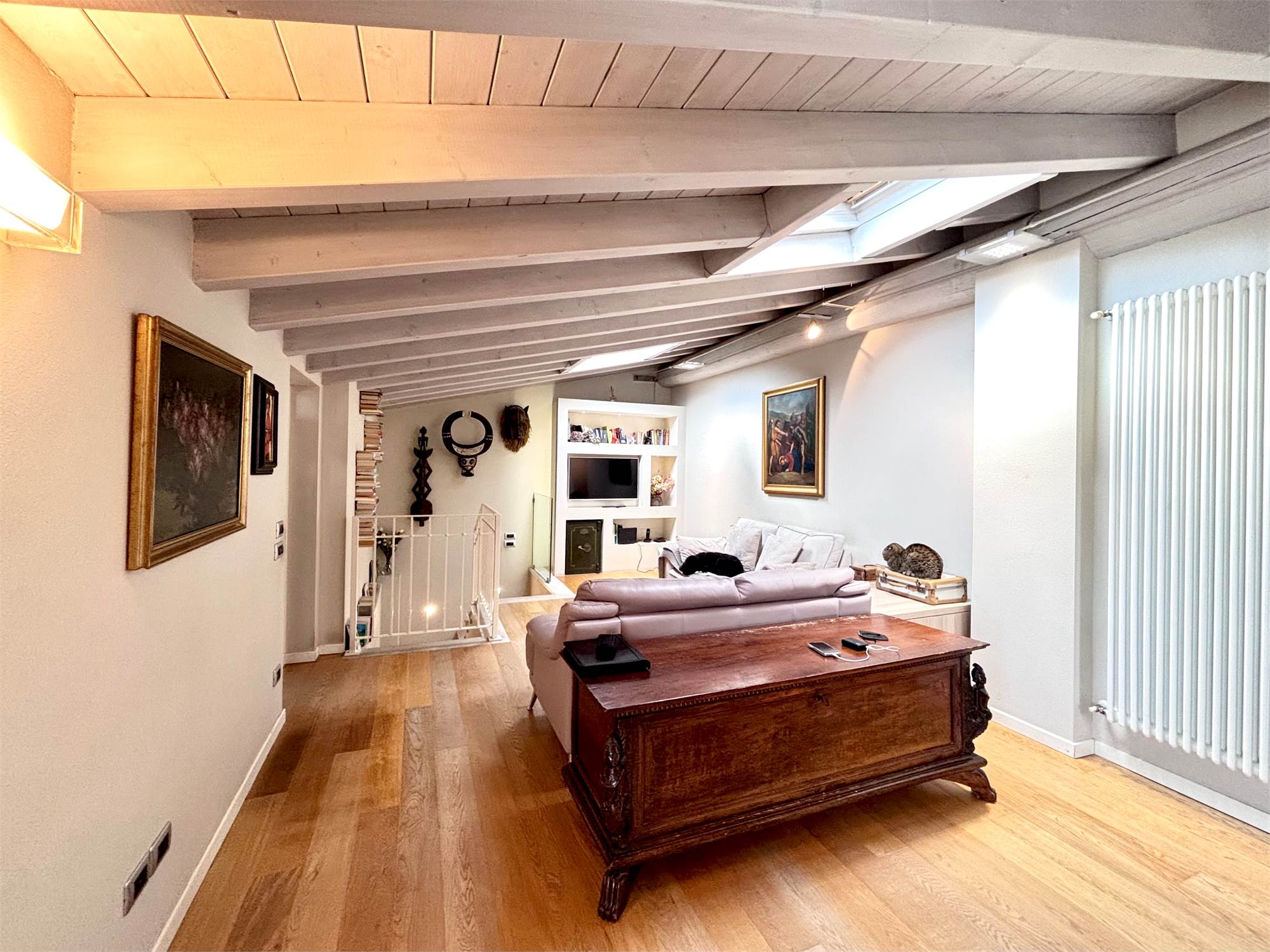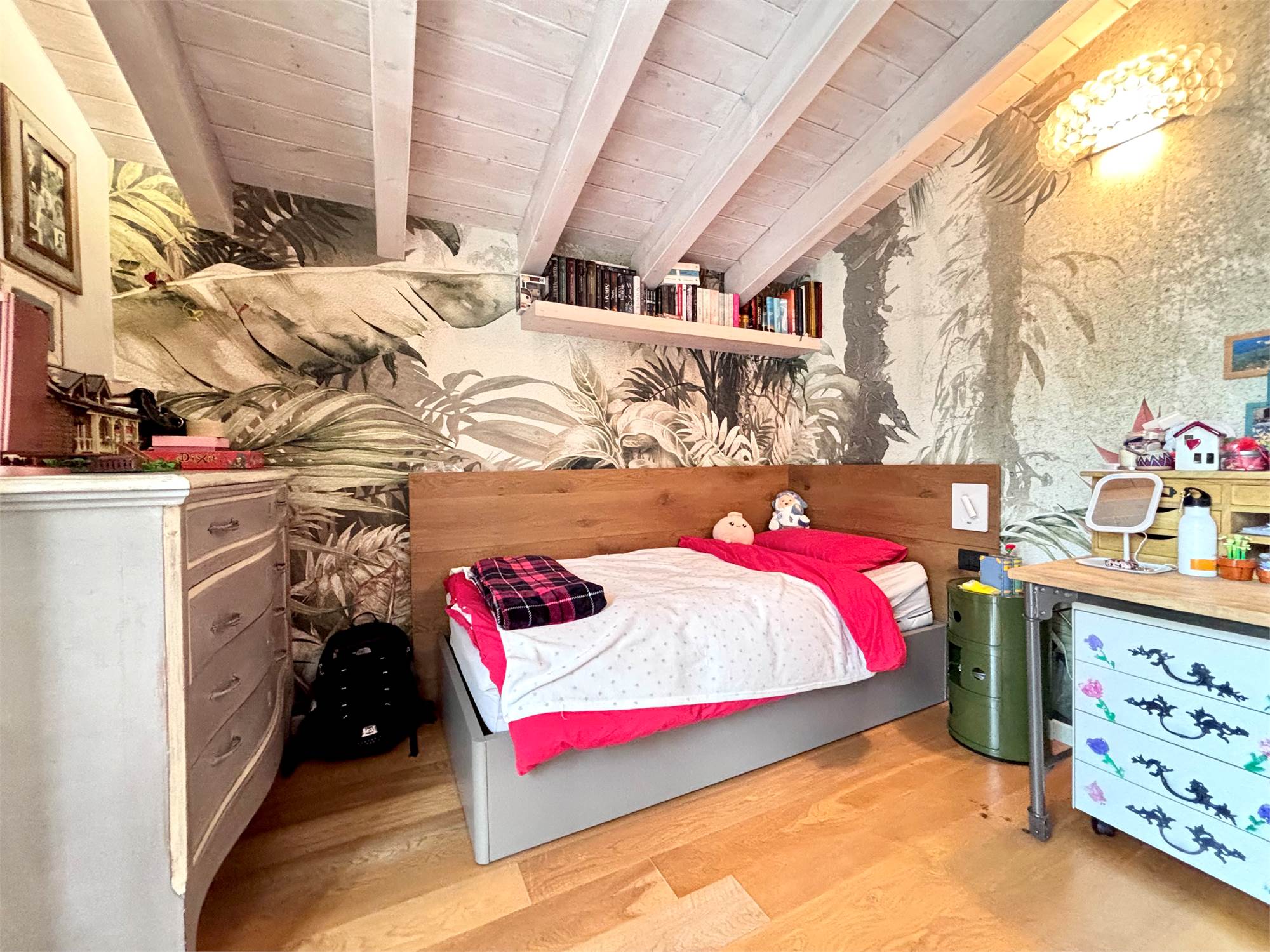 Attico raffinato , terrazze panoramiche con vista sul lago e castello, piscina, cantina, autorimessa e posto auto privato.