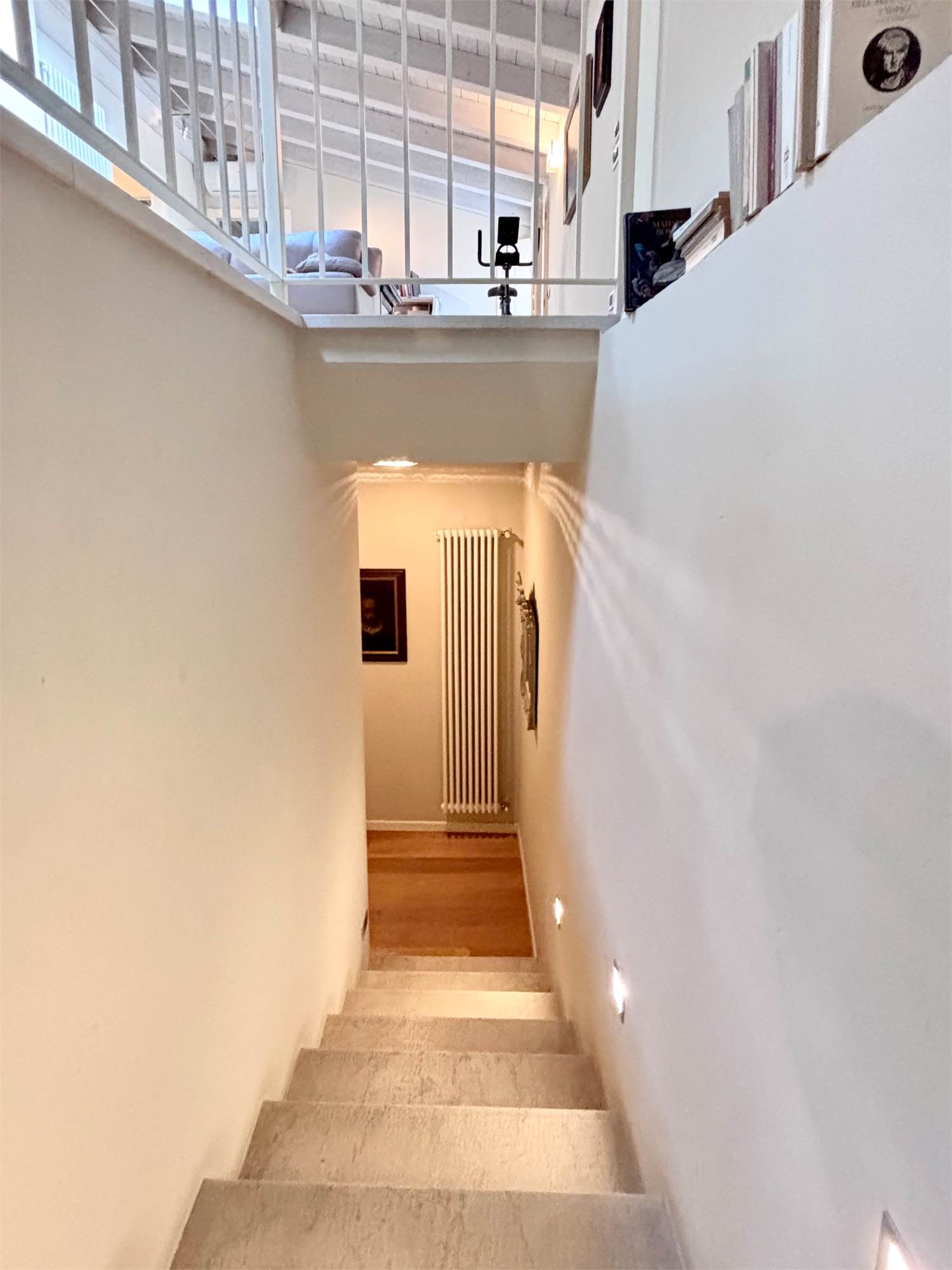 Tramite la scala interna si accede al secondo piano dove troviamo l'ampio soggiorno con accesso diretto al terrazzo.