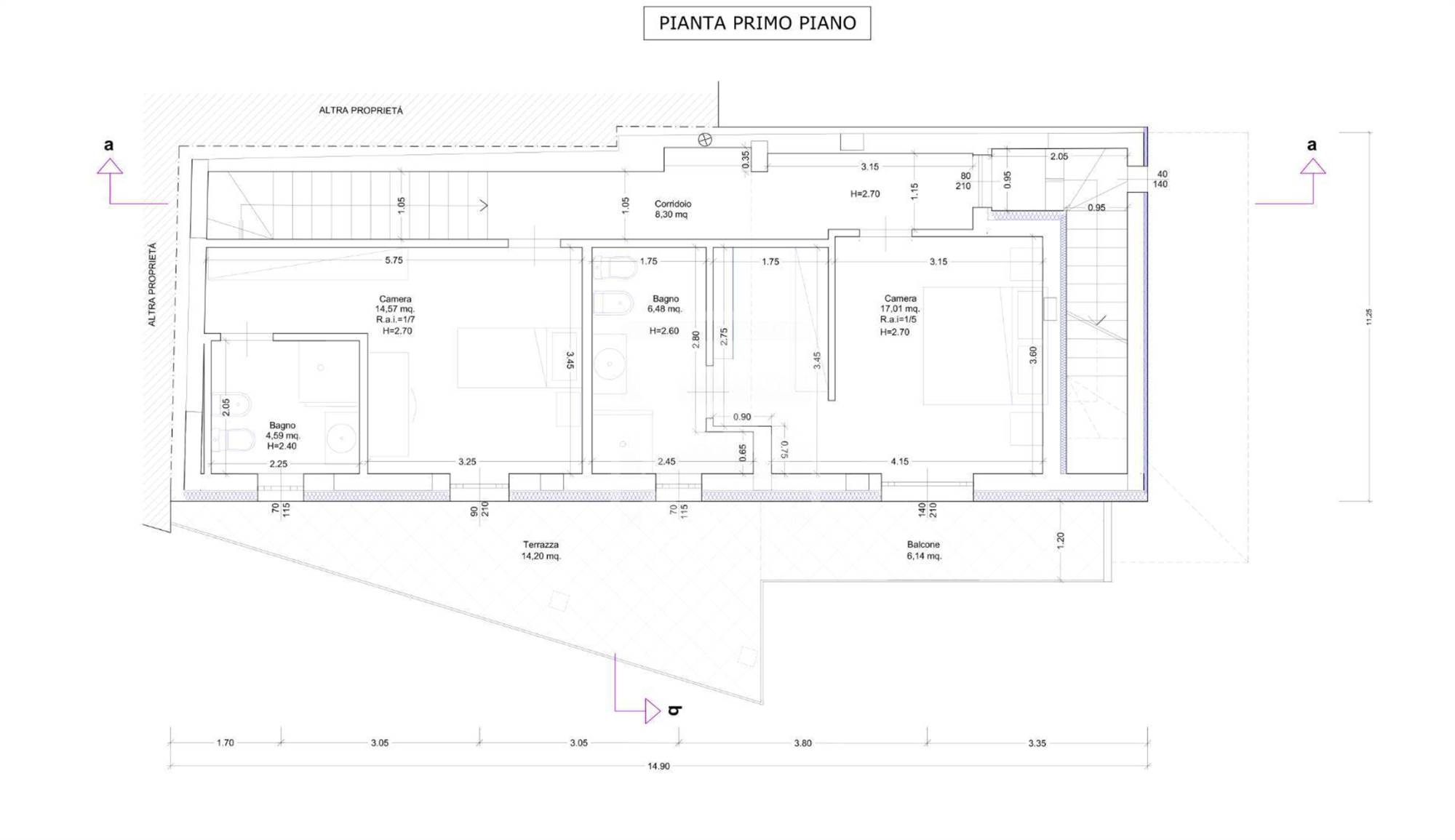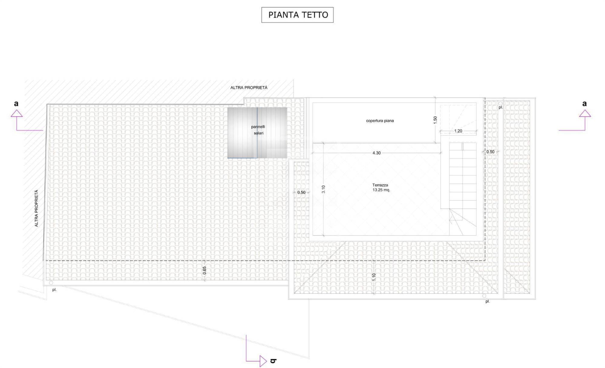 Una scala conduce al solarium panoramico sul tetto, uno spazio esclusivo dove godere privacy, luce e viste aperte.