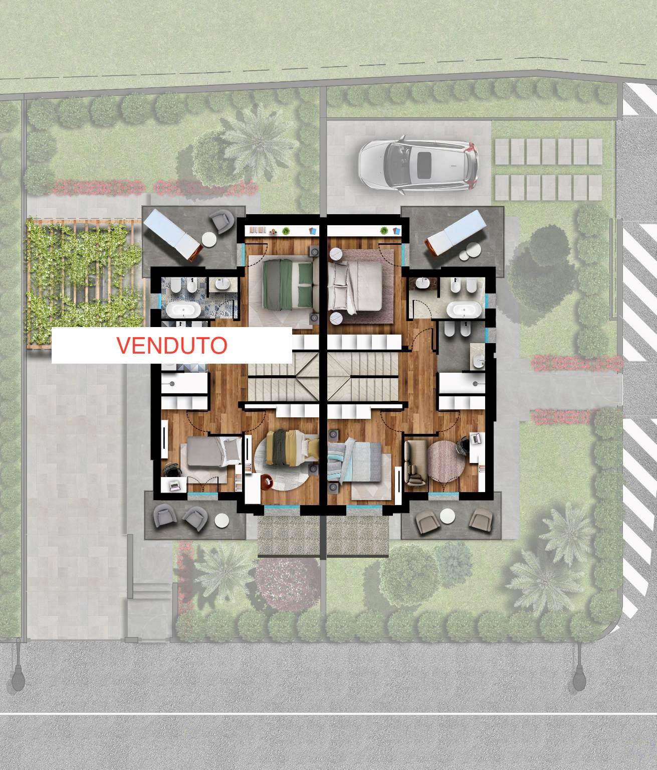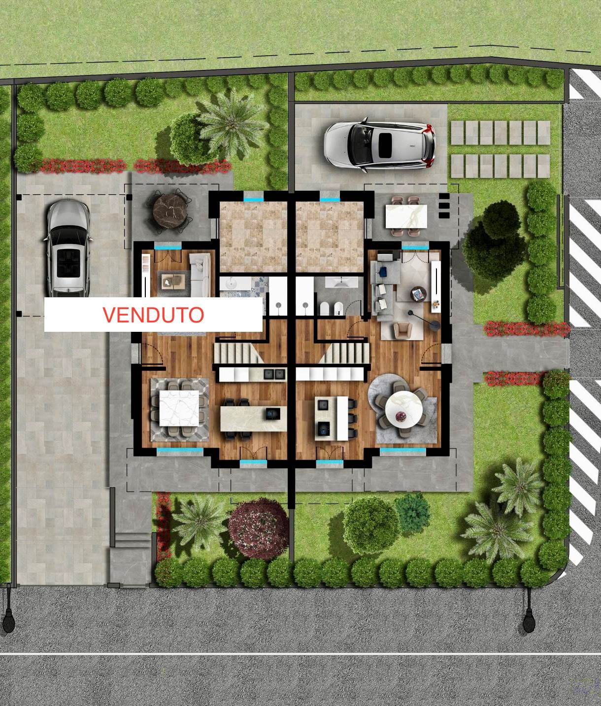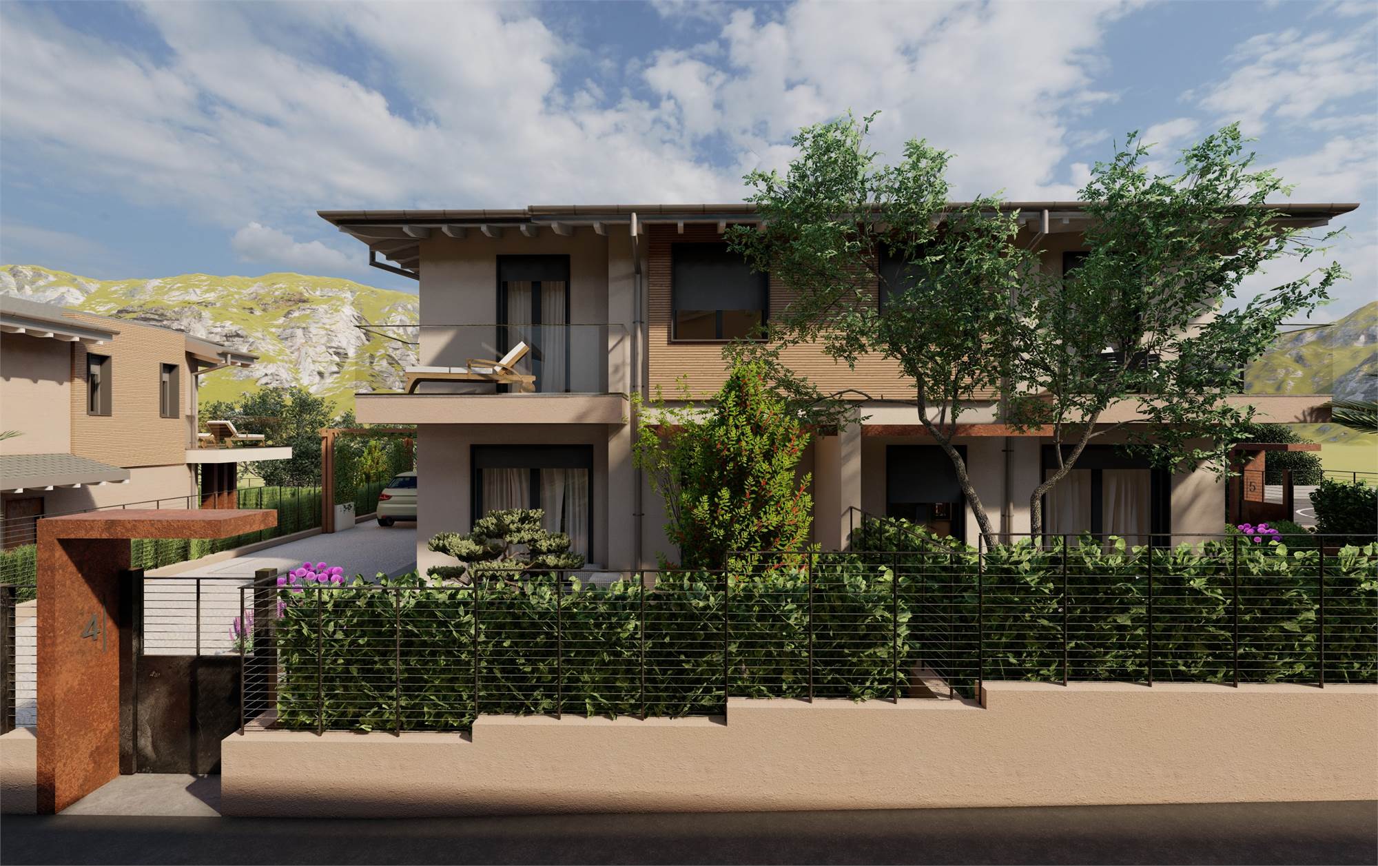 In curata zona residenziale immersa nel verde a Muscoline, proponiamo in vendita nuova ed elegante villa bifamiliare su due livelli con giardino privato e finiture moderne.