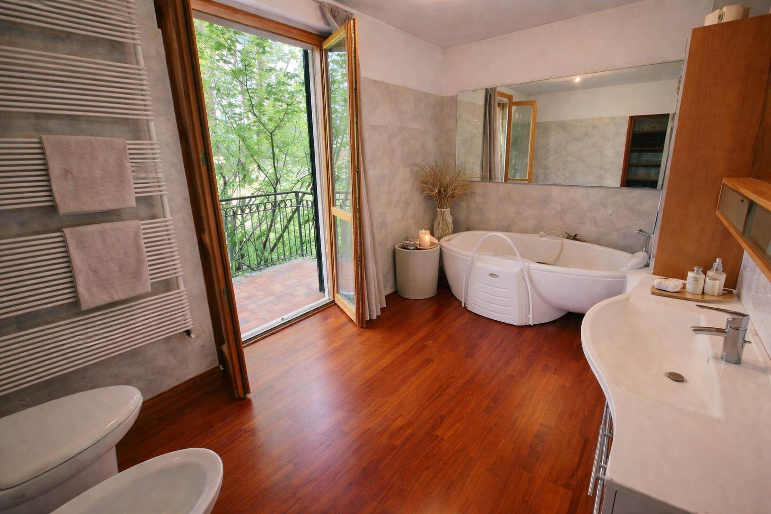 Al piano primo vi sono tre camere da letto, due bagni di cui uno di grandi dimensioni con idromassaggio, due balconi ed una loggia abitabile.