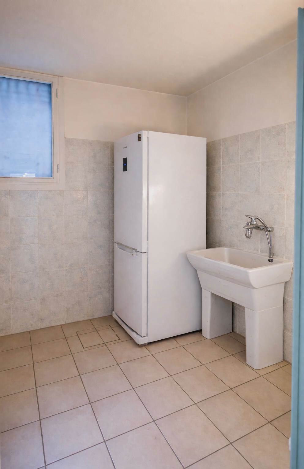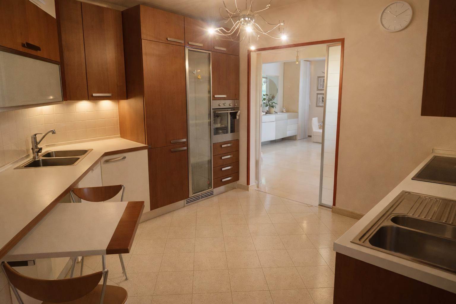 Sempre al piano terra si trova un bagno di servizio/prima lavanderia ed una cucina di grandi dimensioni dove si può pranzare in 6 persone, con accesso diretto al giardino privato.