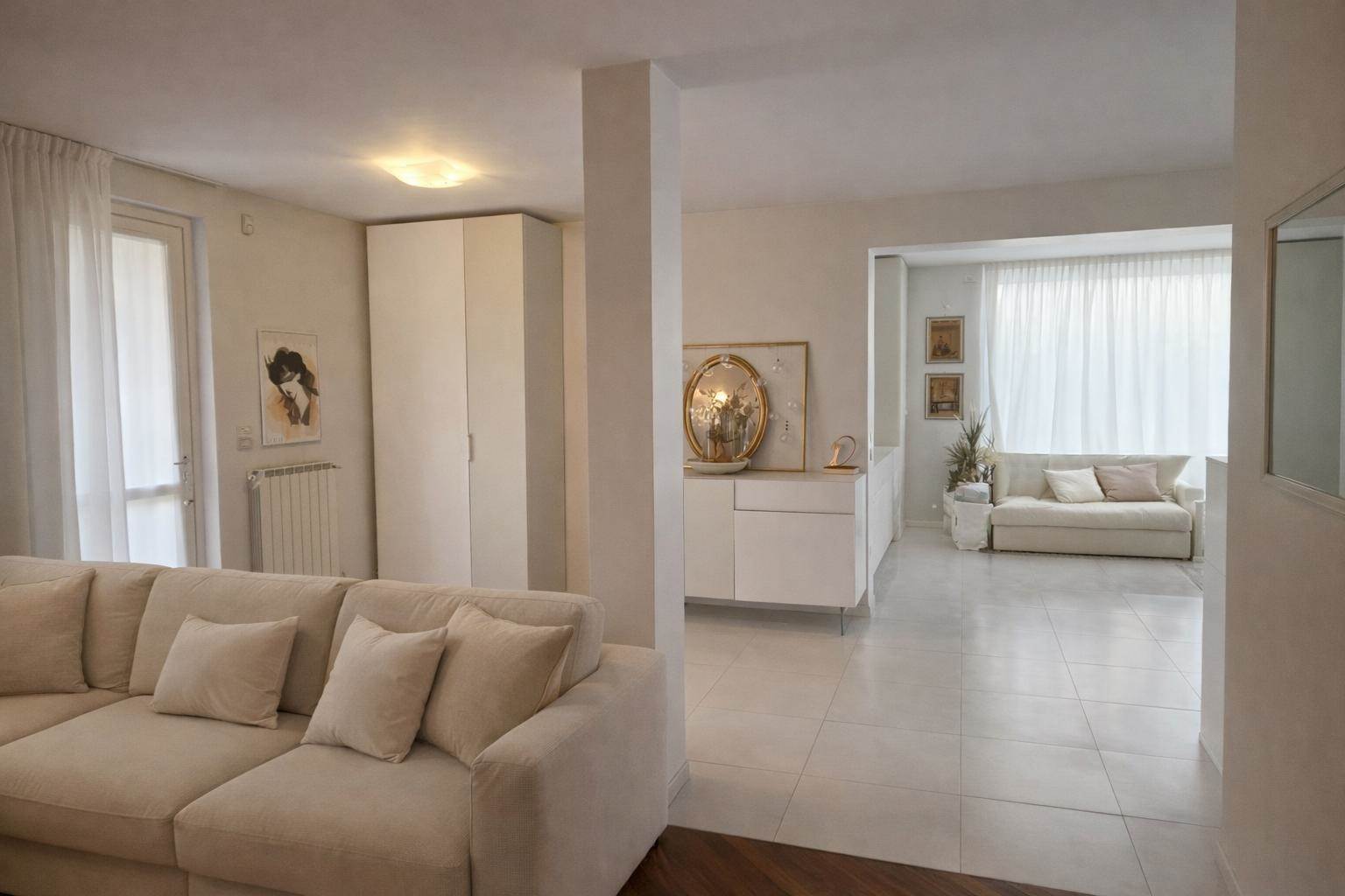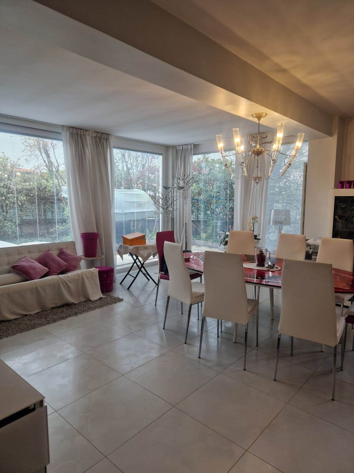 Si accede all’ abitazione da una corte esclusiva delimitata da un’ aiola piantumata entrando in un soggiorno/living molto spazioso in continuità con la sala da pranzo e con un ampio porticato abitabile.