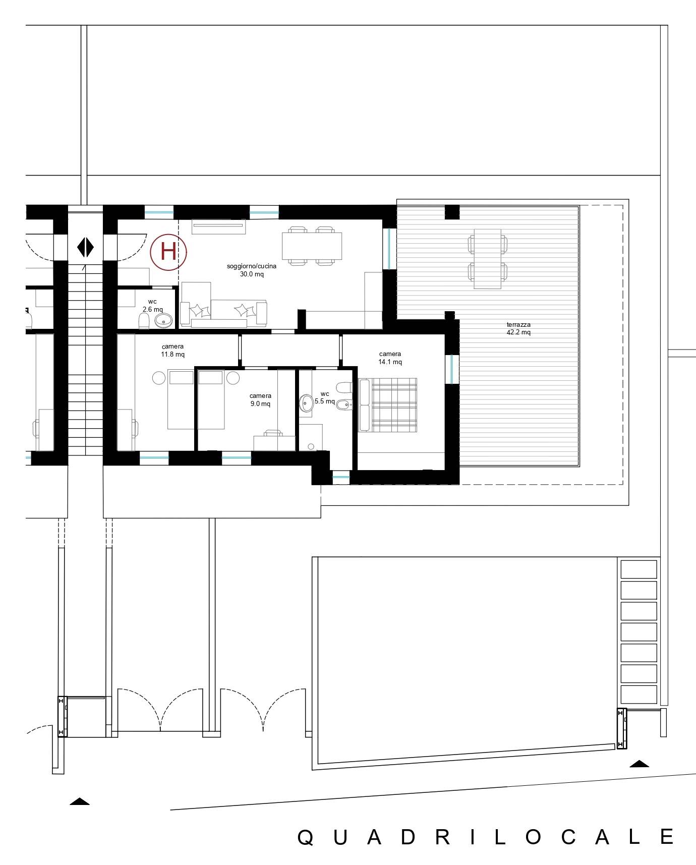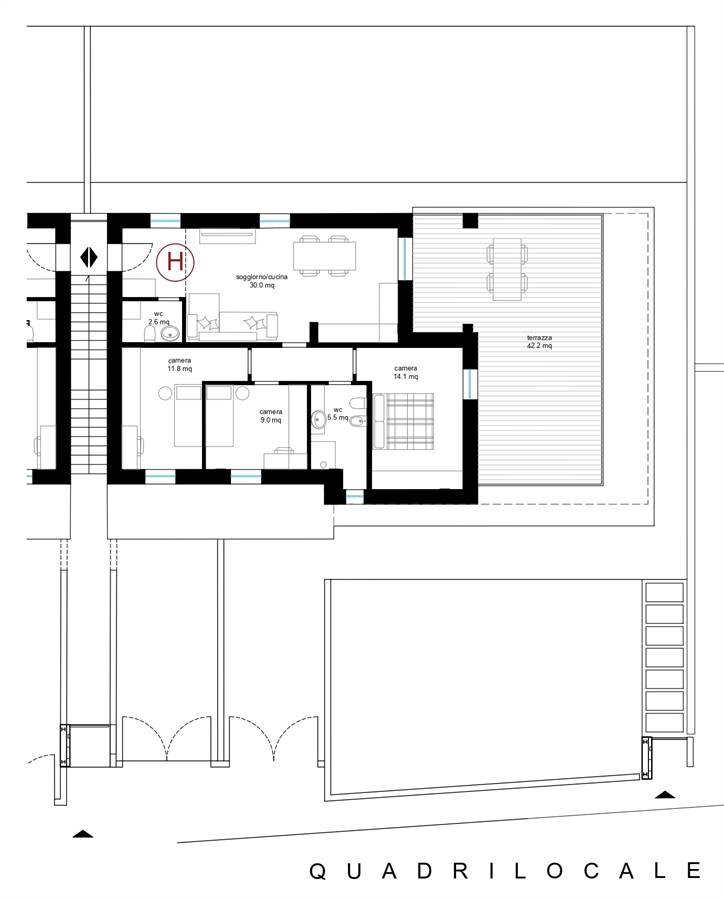 ULTIMO APPARTAMENTO DISPONIBILE, quadrilocale al primo piano, valorizzato da un ampio terrazzo vivibile.